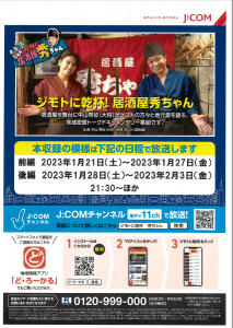 J:COMチャンネルにて放送の「ジモトに乾杯!居酒屋秀ちゃん」に弊社会長の齊藤亀三が