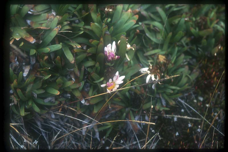 6.種属不詳標高4000m近くで咲いていた南米アンデスらしくない花。むしろアジアやヨーロッパの高山植物のようである。背丈も低く、細かな葉が密生し、いかにも寒さに強そうである。多分キク科であろう。