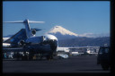 飛行機の横に見える山はエクアドルを代表する火山「コトパキシ山」。標高5、897mで、年間を通し4800m以上は万年雪をいただく。ちなみにこの写真は、キト空港にて撮影した。 |