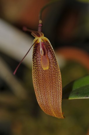 レストレピア属は、南米北部を中心に中米まで分布する属で、側萼片が合着して舟型のシンセパルとなり、花弁と背萼片は先端だけがわずかに膨らむ尾状の独特の花形で知られる。多数の種が知られているが、一部の種群では近縁種と花の形態が連続するなど同定が難しい。