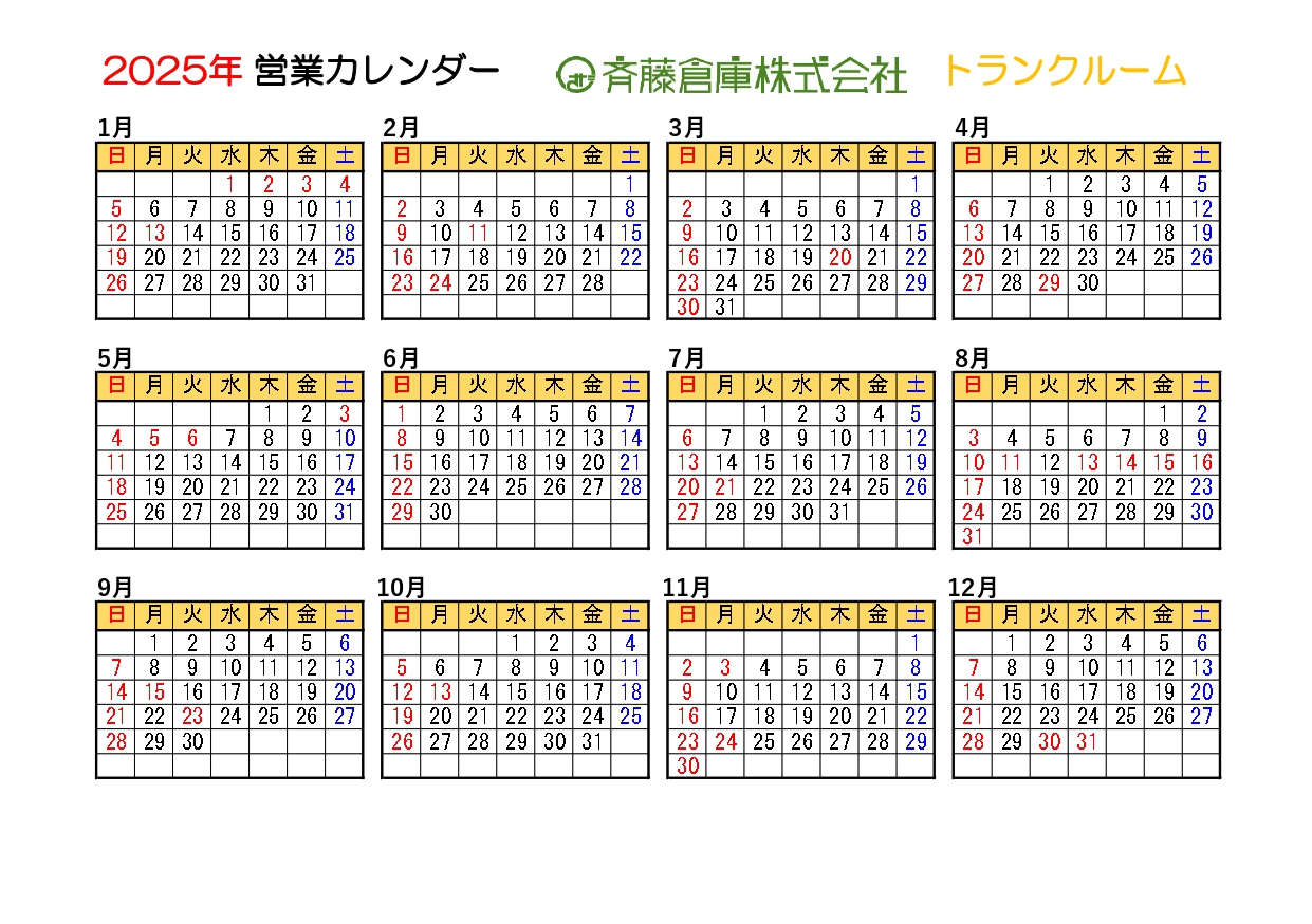 現在、弊社ホームページにおいて営業カレンダー表示不具合が発生しております。 取り急ぎ、下記営業カレンダーをご確認下さい 皆様にはご不便をお掛け致しますがよろしくお願い申し上げます