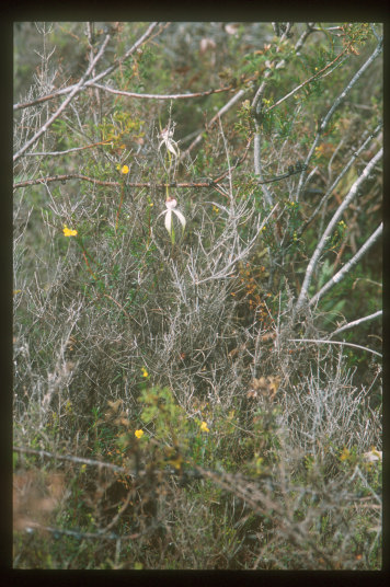 | 1.Caladenia splendens 林内のブッシュか開けた場所に生える。草丈は1mにも達する大型のカラデニア。 |