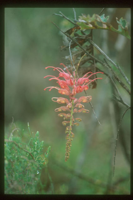 | 9.Grevillea sp. バンクシア(Banksia)の近縁属。蜜を吸いに来る鳥(ハニーイーター)によって受粉がなされる。種数が多く同定は非常に難しい。 |