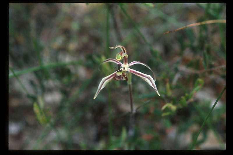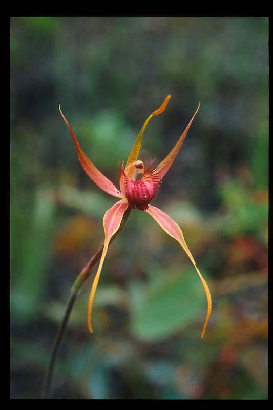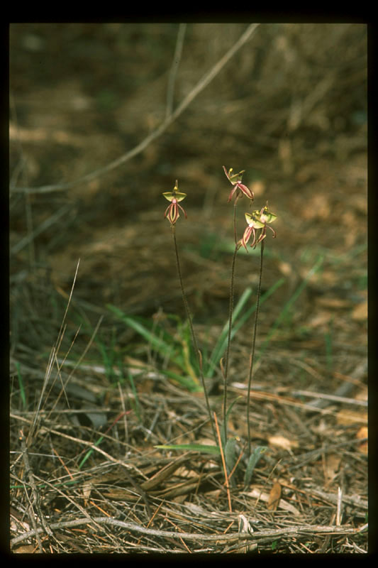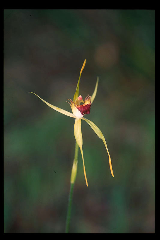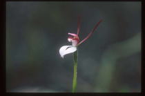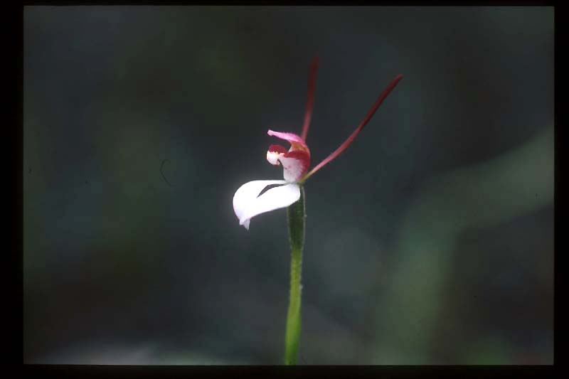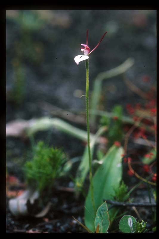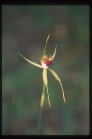 2.Caladenia procera セパルやぺタルが極端に長く伸びる種が多い中で、比較的短く、きっちりした花が咲く種。リップの鮮やかな赤が目立つ。拡大 |