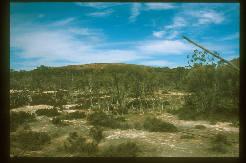4.Wave Rock あたかも津波が押し寄せてくるかのごとく感じさせる。どこにも岩の切れ目や裂け目が無いのが凄い。此処だけ岩が盛り上がっている。周囲は大雨が降り続くと、冠水するそうである。拡大 |