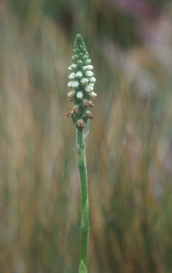 | No.1Gomphichis valida エクアドル南部サラグロ、標高約3500m。最も標高の高いところに生育する地生ランの一つ。高さ30−40cmで、花は雪白色、花弁とがく片の表面には繊毛が密生する。No.6の写真のすぐ近くで撮影。以前、Aa sp.と同定したが、誤りであった。 |