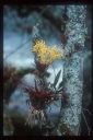 | No.5. Odontoglossum pardinum クエンカ近くの渓流沿いの樹幹や枝に着生している。標高約3200m。年間を通じ冷涼な気候で昼夜の温度差は10度前後であるが、季節に変化はほとんどない。花茎は1m以上に達する。一緒に写っているのはいわゆるアナナスである。 |