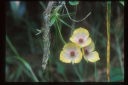 No.3. Brachyonidium sp. クエンカからリモンへの途中、アンデス東斜面標高約2800mの川沿いの林床。根茎は太く、直立して高さ40-50 cmになる。花は大きく、長さ5cm前後。花弁の先は尾状になり、反り返りながら下垂する。花は前種とは逆向きに咲き、合着した側がく片は上側に位置している。 |