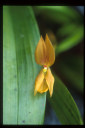 ドモノ村付近のネグロ川の川原に発達する低木林内で見つけた。 トリゴニディウム属に近縁。棍棒状の長いバルブと革質の大きな葉が2枚。花色と花形に特徴があり、長さ5cm近くある。付近には、フラグミペディウム