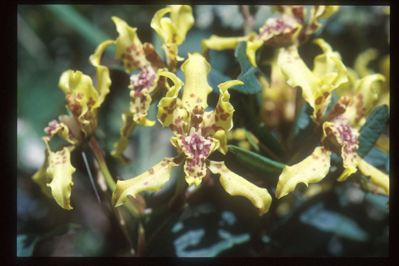 大型のオドントグロッサムである。花は直径5cm位、弁質は厚く、花持ちも良さそうな美しい花である。しかし大きくなりすぎるためか、現地の愛好家も栽培していない。 |