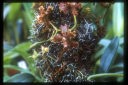 本種の花序も長く延びるが、前種ほどではない。自生地では、1つの花序で直径5-6cmの花が100-200花つく。この属の花は、唇弁が上に位置するのが特徴でもある。どれが唇弁でどれが花弁か判りにくい。 |