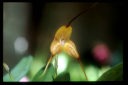 1花茎1花タイプの種。マスデバリアの花はどれも細い花茎の先端に咲くのでほんの僅かでも風が吹くと揺れるので、花が大きいだけに撮影は難しい。自生地は、正に「昼なお暗き」林内でかつ足場が悪いので失敗が多い。M.