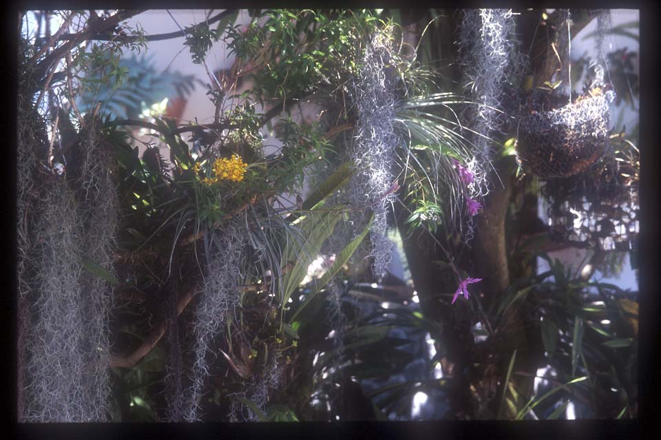 首都キト周辺ではヒルツ博士に、南部クエンカ周辺ではサンチェス博士に同行いただく。クエンカ市内の閑静な住宅地の一角にある博士の家の庭はランやティランジアで一杯であった。日本では栽培困難種が無造作に咲いていた。 |