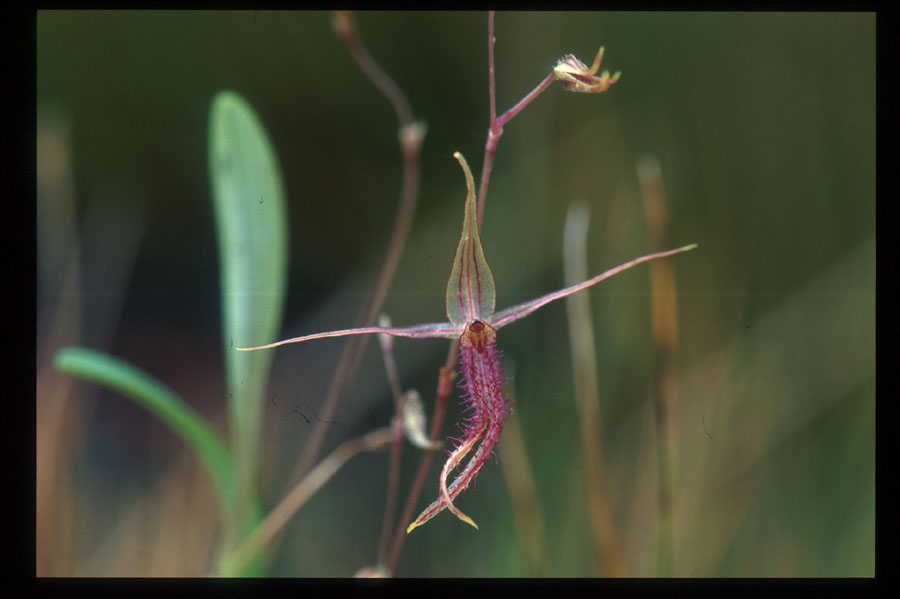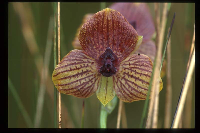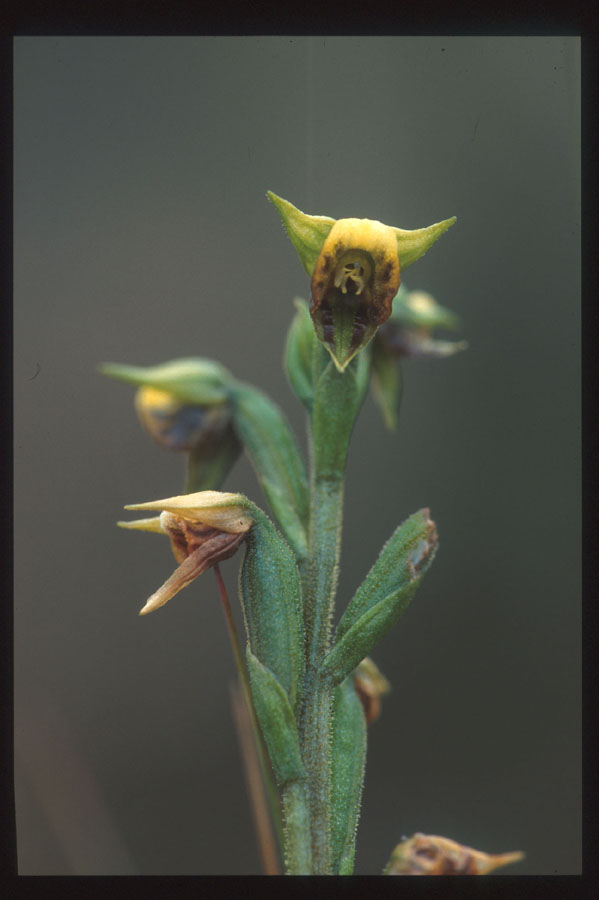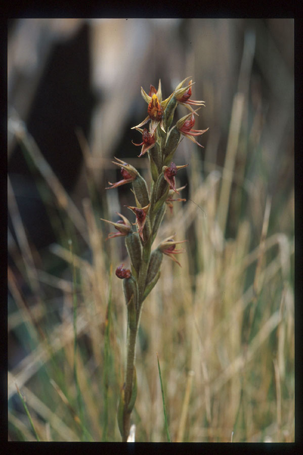 | 5.Pterichis galeata 草丈30cm前後、開けた場所にイネ科の植物と混在する。同じ場所にtrilobaも生育していたが、どちらも草丈、草姿はよく似ている。しかし、花の形態や色が異なり、簡単に区別される。拡大,triloba |