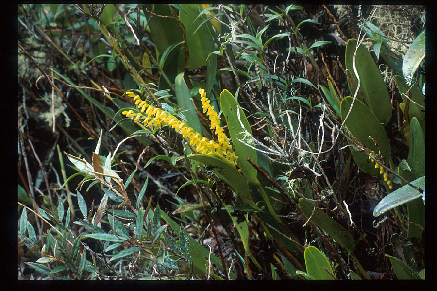 6.Odontoglossum aureum 前種よりは、乾燥気味の環境下に生育している。又、標高も2500m前後までと分布域も広い。花数は概して少ないが、黄色なので目立つ。拡大 |