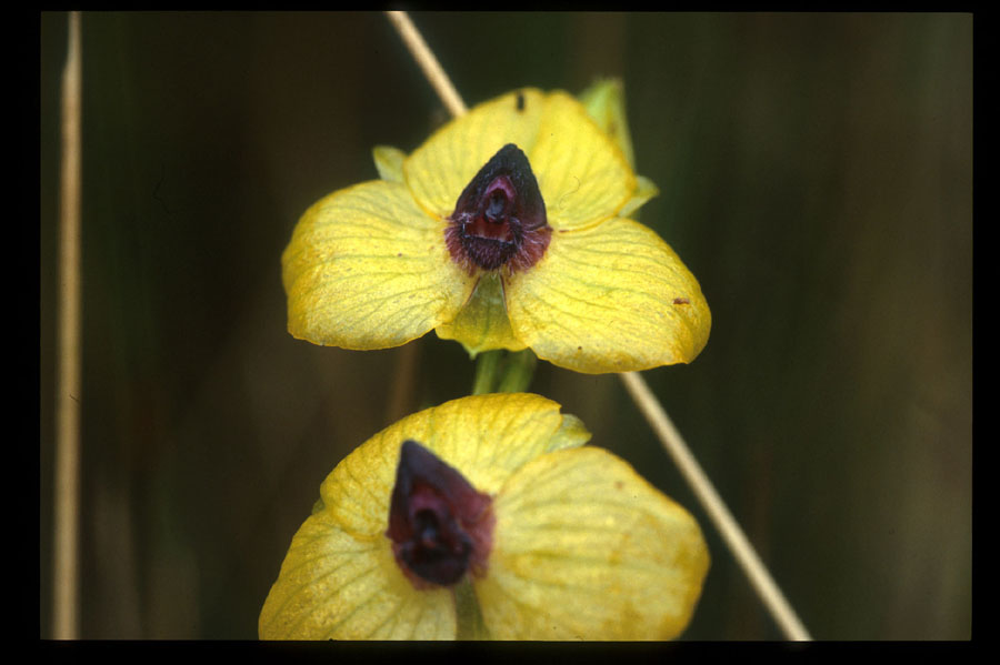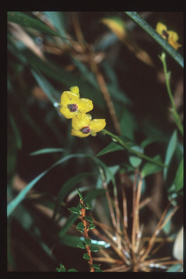 | 1.Pleurothallis 標高約3.000m、幹線から横道に入ると道路沿いに所狭しと様々なランが自生している。鮮やかな黄色い花を咲かせるプレウロは草丈30cmもある。萼片の内側には細毛が密生する。拡大 |