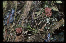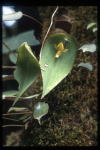 | 5.Pleuro.lilijae 葉の表面がザラザラし、光沢は無い典型的な乾燥型プレウロタリス。地上から約1m、夜間はともかく、日中は木漏れ日もあたり、カラカラに乾燥していた。花は無かったが、マスデヴァリアもあった。拡大 |