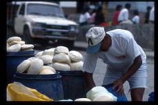 10.チーズの山 谷沿いの小さな村、Limonのマーケットとおぼしき場所で見かけた。伐採された原生林では、殆どの場合牛が放牧されている。その為か、食生活は想像以上に欧米風である。拡大 |