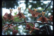 12.Mormodes サンチアゴ先生のランは、総て自分で採集したもの。専門家の方々に標本を送り、自分の名前をつけてもらうのが楽しみ。このMormodesも、未記載のようである。萼片と花弁が片側によるし、色も独特である。拡大 |