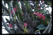 16.Rodriguetzia rosea 同じ公園のやや大きめの木に着生していた。あちこちの集落だけで見かけたので、多分初めは人が持ち込んだのだろうが、自然に咲いているところはやはり自生地である。拡大 |