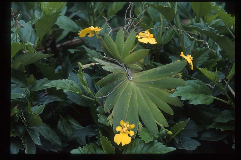 11.Kefersteinia Limonの学校の先生Santiago氏は、ラン愛好家。いつも我々のラン探しに何日か同行してくれる。その間、学校は当然休校。彼の家の庭だけでも200種近いランがある。拡大 |