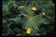 4.最大のレパンテス?Lepanthes gargantua 斜面を下ること20-30分、道路沿いの谷に入った時に出会った。葉は長さ20cm以上、葉柄は25-30cmとビックリするような大きさだった。残念ながら、花は直径1cm強と、さほど大きくはなかった。拡大2 |