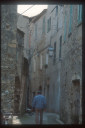 3.シープレッサ村、村内の通路 村の中央にある教会の前だけに広場があり、そこまでは何とか車も入れるが、村内の通路のほとんどは写真のように極めて狭く、荷車の通行が精一杯。 |