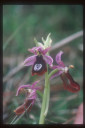 | 14.Ophrys sphegodes 標高500m前後の開けた草地に点在していた。草丈30cm近くに達し、数花がつく。唇弁中央にあるメタリック ブルーの縦縞、両翼のこぶ状突起などが特徴である。花は変異に富む。 |