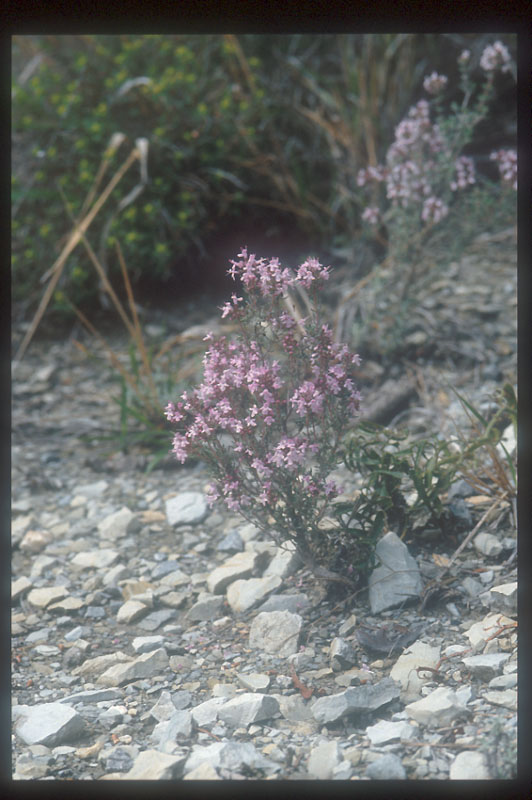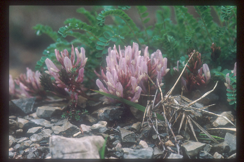 2.Astrogalus sempervirens 南斜面のガレ地に点在するマメ科の植物。比較的標高の低い、2−300m辺りに多く見られた。完全に乾燥型の種である。直径20-30cm位の株になる。拡大 |