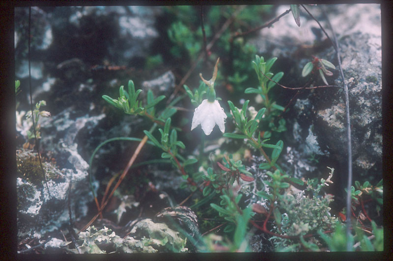 3.Leucojum vernum(水仙の原種) 草丈10cmあるかないかの小型種。葉は非常に細く、線形。花は直径約1cm、必ず下向きで開花する。若干の腐葉土が堆積する場所に生育する。開花期にはかなり湿っているようである。Ophrys bertolonii が近くにあった。拡大 |