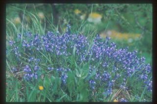 | 7.お花畑(シープレッサ村) 村の裏山は、ほとんど手つかずのままなので、人里近くに自然のお花畑が点在する。村は急峻な尾根筋にあるが、付近では放牧をするでもなく、農地がある様子もなく、どんな仕事に就いているのだろうか。イブキジャコウソウ、プリムラに混じってオルキス(濃紫色の直立する株)もあった。 あった。拡大 |