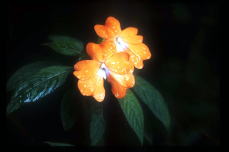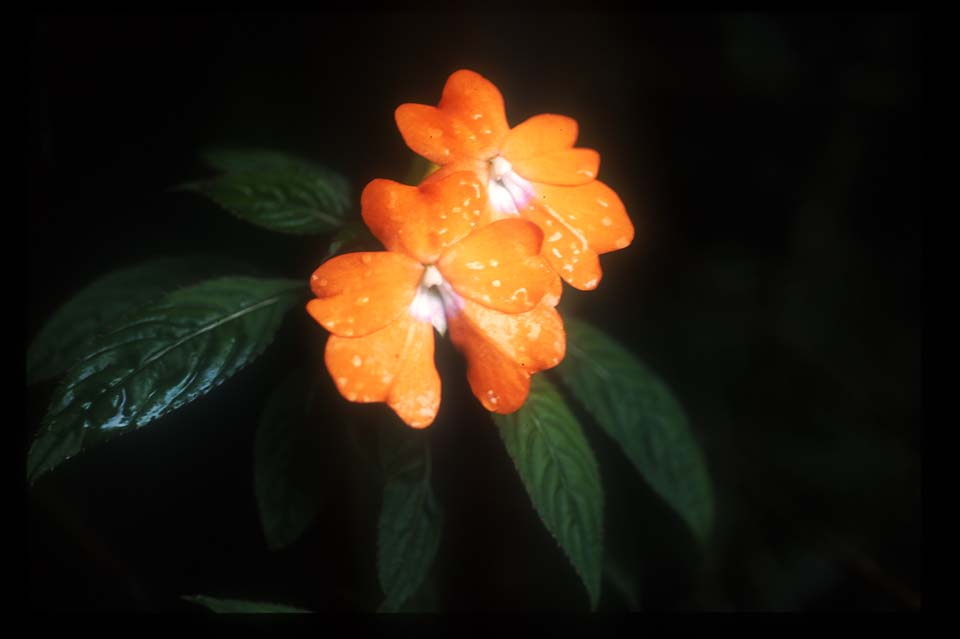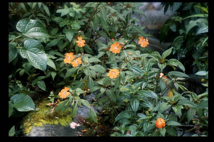 | 5.Impatiens(オレンジ) さすがに自生地で見る花は大きい。この属は、日本に自生するツリフネソウ、ホウセンカと同じであるが、果実はホウセンカのように大きくならない。しかし、熟すと一寸触れただけで弾けるのは同じ。拡大 |