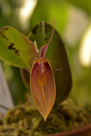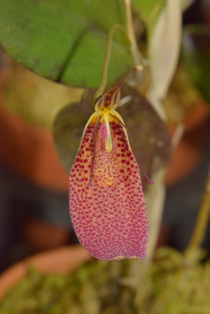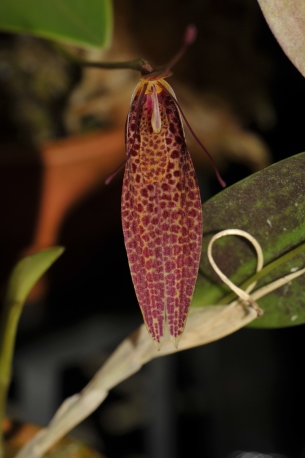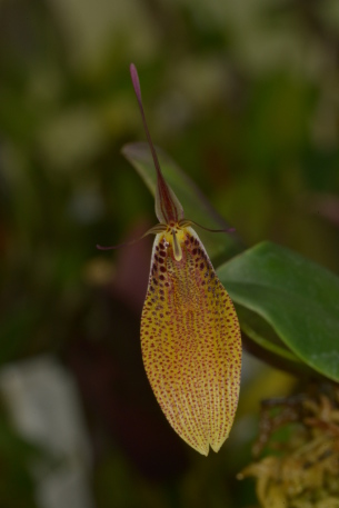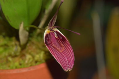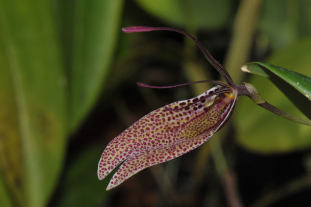 レストレピア属は、南米北部を中心に中米まで分布する属で、側萼片が合着して舟型のシンセパルとなり、花弁と背萼片は先端だけがわずかに膨らむ尾状の独特の花形で知られる。多数の種が知られているが、一部の種群では近縁種と花の形態が連続するなど同定が難しい。